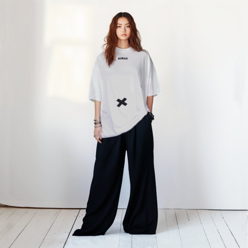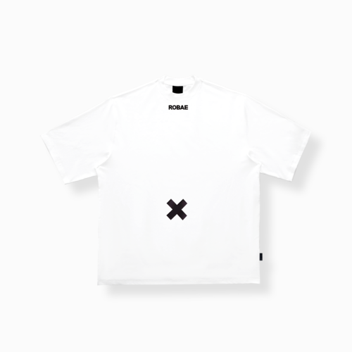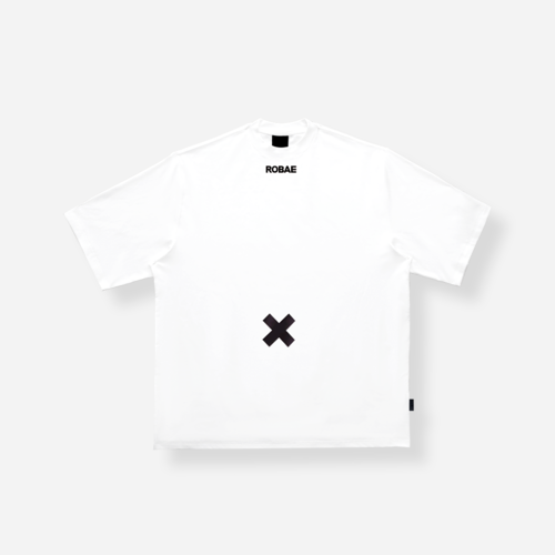 ROBAE2026 为限定成衣注入第一层生命皮肤。 以“X”符号探索生命与角色的意义,象征生命的传输与起始,欢笑、玩耍、享受乐趣。X角色款T恤选用优雅白色重磅超柔棉,兼具立体挺括与柔软肤感。阔肩宽松版型结合环领设计,适配多元场景;散口中袖与中长平直下摆增强动态穿着自由度,融合舒适与精致。肚脐位置的“X”与生命起源结合,象征角色诞生,腰部黑鸟星徽化作雷达尾巴,玩味表达幽默与童趣。