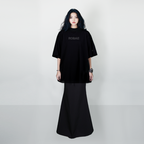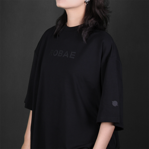 ROBAE为限定成衣注入第一层生命皮肤。 “ROBAE”所代表的“强势与自我”的品牌意义,在“我的徽章”这一主题下尽显独特的品味,坦率表达个性、情感和自我的极致追求。ROBAE标志款T恤精选强势黑色重磅超柔棉,兼顾了立体挺阔和肤感柔软。阔肩宽松版型结合环领设计,适配多元场景;散口中袖与中长平直下摆增强动态穿着自由度,将舒适体验与精致风范巧妙融合。标志性的ROBAE立体印花点缀正面,黑色T恤配以黑色标志,重新演绎低调经典与高级审美,章展现低调优雅的气质。