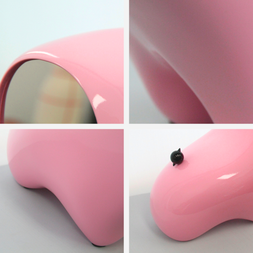“福琛”这一角色,结合“幻想生物”与“童话故事”(小狼和小乌鸦)。圆润的线条描绘昂首企盼的热切身姿,面部金属镜面映射流光溢彩,娓娓道来盈盈心动的甜蜜;ROBAE经典黑鸟星标志镶嵌在尾部,紧紧相依,赞颂唯一、永恒、明媚的爱意。“福琛”盈盈粉,以甜蜜的粉色冲击情境,呈现心动氛围之美,暧昧游离。