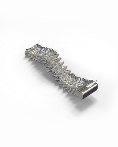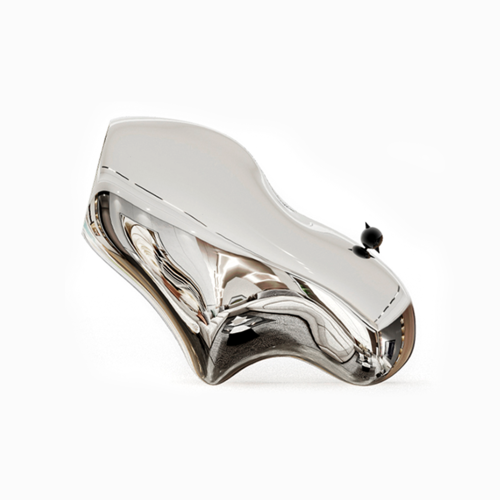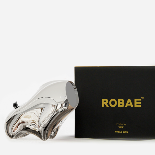 “福琛”这一角色,结合“幻想生物”与“童话故事”(小狼和小乌鸦)。纯粹的线条描绘孤高的仰首,一往无前,开启强势独立的生命旅程;ROBAE经典黑鸟星标志镶嵌在尾部,犹如见证者,浩渺旅途,星辰冷艳,黑星为伴。福琛”基地银大胆应用星际亮银色电镀质感,与面部金属镜面交相呼应,至高赞美独立、开拓、纯净的绝对未来精神。