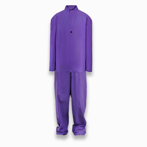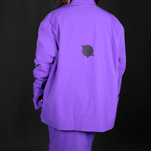 ROBAE科学家系列(裤装套装)的设计灵感,源自童年科学家之梦。宽大的外套,认真的模样,稚气与梦想都在此融入设计,紫色系列诠释实验符号美学、色彩美学与浪漫基因。科学家系列探索时装美学与工装主义的界限,将实验室工装的特殊功能性与高定时装的艺术性组合,加以经典黑鸟星立体印花标志,轻盈质感、功能面料与正装剪裁。立领、展肩,长衣袖与中长设计 搭配 宽松直筒裤装浪漫设计,打造品牌经典“实验工装”风格。跨时代的时尚碰撞,严肃且浪漫。