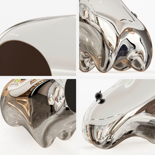 “福琛”这一角色,结合“幻想生物”与“童话故事”(小狼和小乌鸦)。柔和的动态曲线营造出非凡的向往之姿,ROBAE经典黑鸟星标志镶嵌在尾部,合以浪漫的幻想角色,表达对浓烈的生命力与领地的赞美,呈现出严肃而活泼的场域质感。“福琛”夜橙金大胆使用独特橙金色电镀质感,崇尚热烈、神秘、耀眼、炙热的生命,守护理想和财富,为空间创造无限流光溢彩和动态的摩登之美。