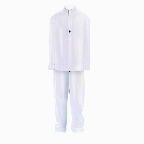 ROBAE科学家系列夏季(裤装套装),科学家之梦与阳光的组合。透明的外套,泡泡与梦想都在此融入设计,诠释实验符号美学与浪漫基因。科学家系列探索时装美学与工装主义的界限,将实验室工装的特殊功能性与高定时装的艺术性组合,加以经典黑鸟星立体印花标志,轻盈质感、功能面料与正装剪裁。立领、展肩,长衣袖与中长设计 搭配 宽松直筒裤装浪漫设计,打造品牌经典“实验工装”夏季风格。