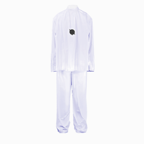 ROBAE为限定成衣注入了第一层“生命皮肤”,灵感源自象征优雅与礼仪的领结文化,不仅代表着严肃与经典,更传递出对场合的尊重与对细节的重视。T恤以“黑鸟星”标志替代领结,展现独特的优雅与浪漫。精选优雅白色重磅超柔棉,兼顾了立体挺阔和肤感柔软。阔肩宽松版型结合环领设计,适配多元场景;散口中袖与中长平直下摆增强动态穿着自由度,将舒适体验与精致风范巧妙融合。